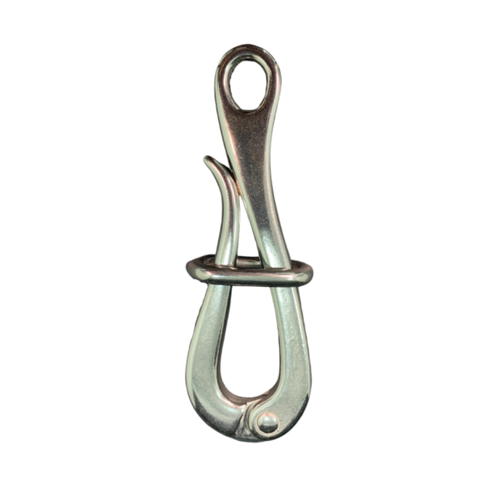 MOSQUETÃO PELICANO AÇO INOX 100MM PARA BALSA SALVA-VIDAS