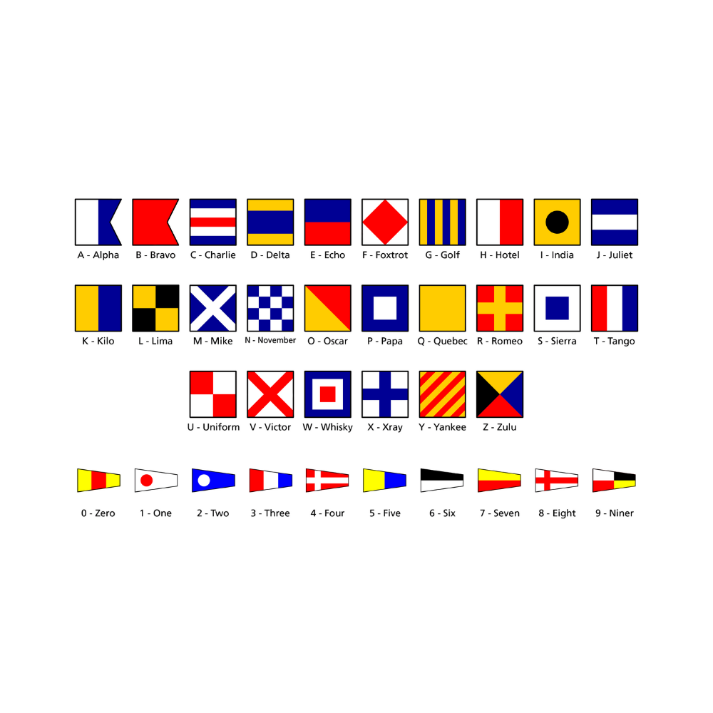CONJUNTO DE BANDEIRAS DE SINALIZAÇÃO MARÍTIMA (ALFABETICAS, NUMERICAS E SUBSTITUTAS) – 0,70X1,0